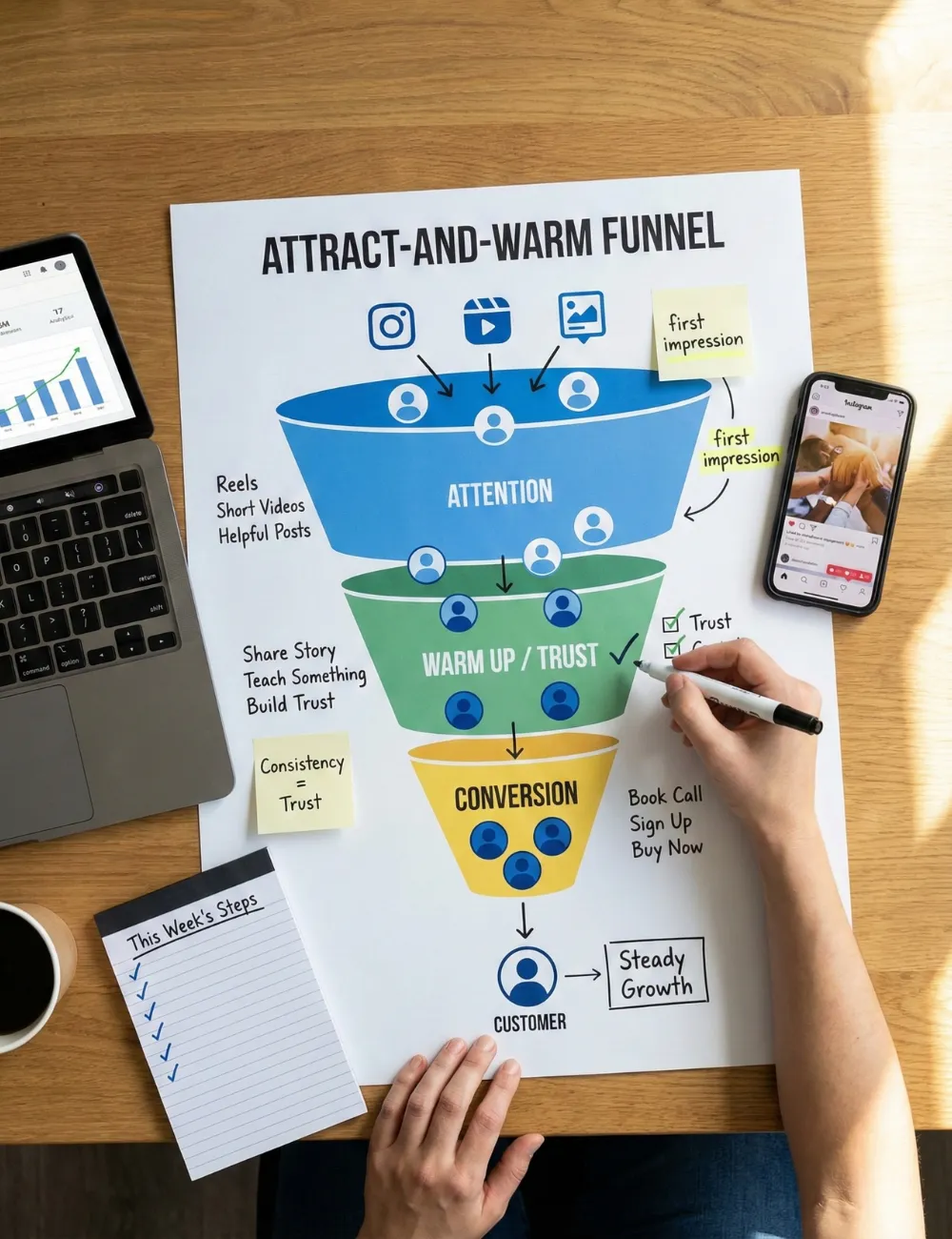 Most marketing jumps straight to “Book a call” or “Buy now.” The problem is that your audience has not had time to know you, like you, or trust you yet. When there is no warm-up, your funnel is trying to convert people who still feel like strangers.